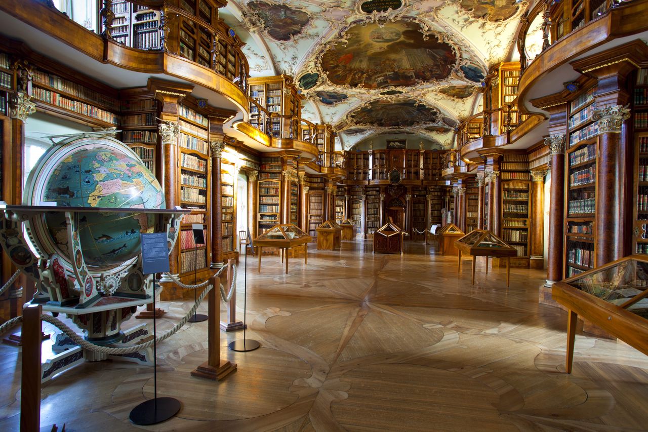 修道院創設からまもない8世紀から書物の収集がはじまった世界最古の図書館であり、所蔵数は約17万点。そのうち、多くが写本とよばれる手書きの文書で、古代ギリシャ・ローマの文献や聖書・神学書、医学・天文学・歴史書など、ヨーロッパの失われかけていた知識を守り伝えた場所だと言われています。
